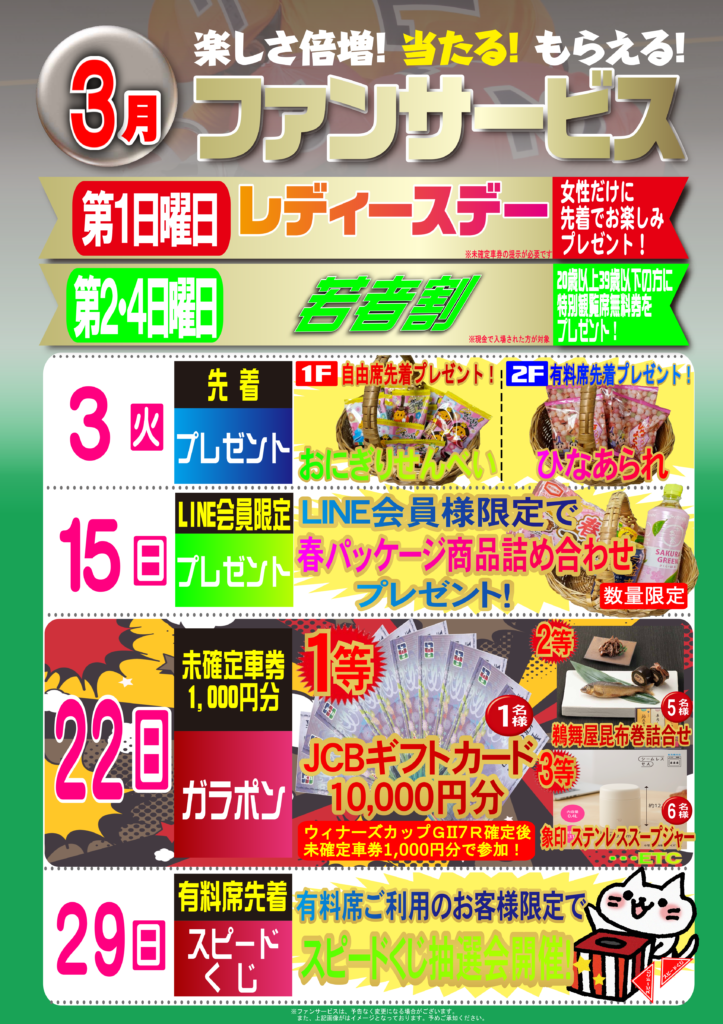 3月3日(火)『先着プレゼント』開催!