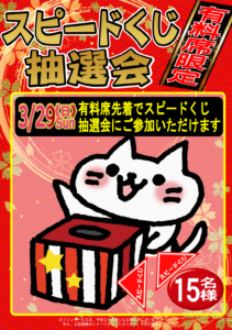 3月29日(日)『有料席先着スピードくじ抽選会』開催!